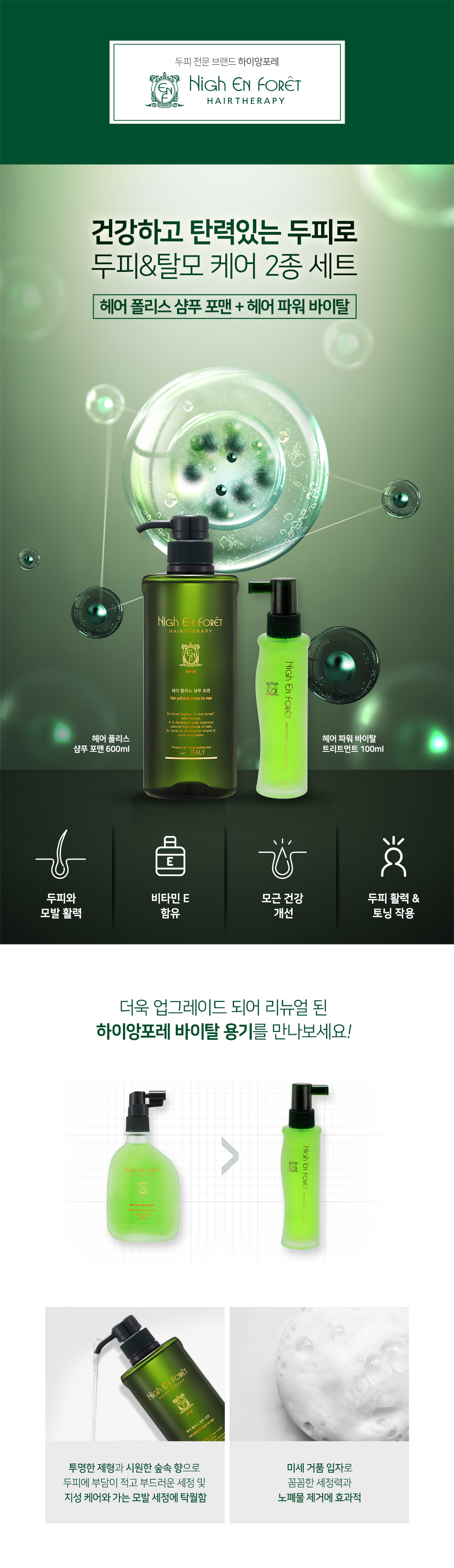 두피와 모발의 활력을 증진시키고견고하게 하며 세밀하게 세정합니다.월계수추출물과 레비타린활성성분,비타민E는 부드러운 자극을 주어 두피에 영양공급을 원활하게 하며 두피에 에너지를 공급하여 모근을 건강하게합니다.