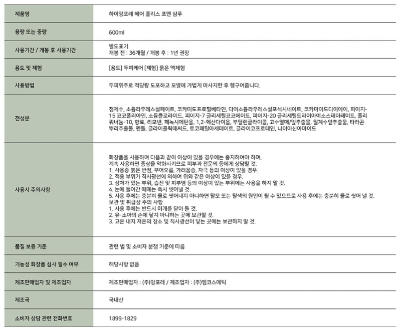 앙포레 헤어폴리스 샴푸 포맨 600ml (Hair police shampoo for men)