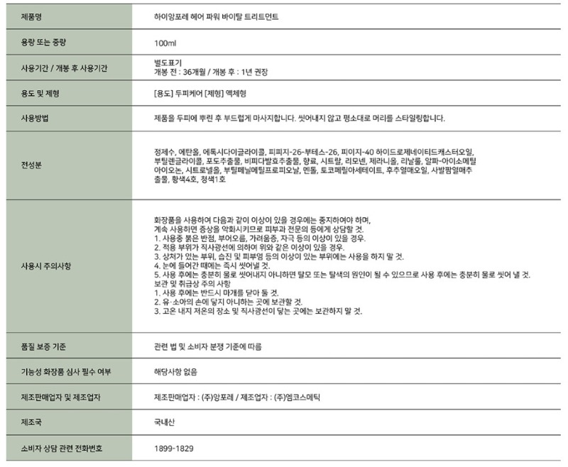 앙포레 헤어 파워바이탈 100ml (Hair power vital treatment)