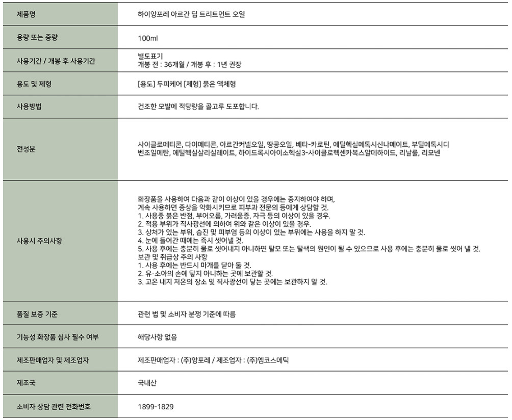 하이앙포레 아르간 딥 오일 (100ml)