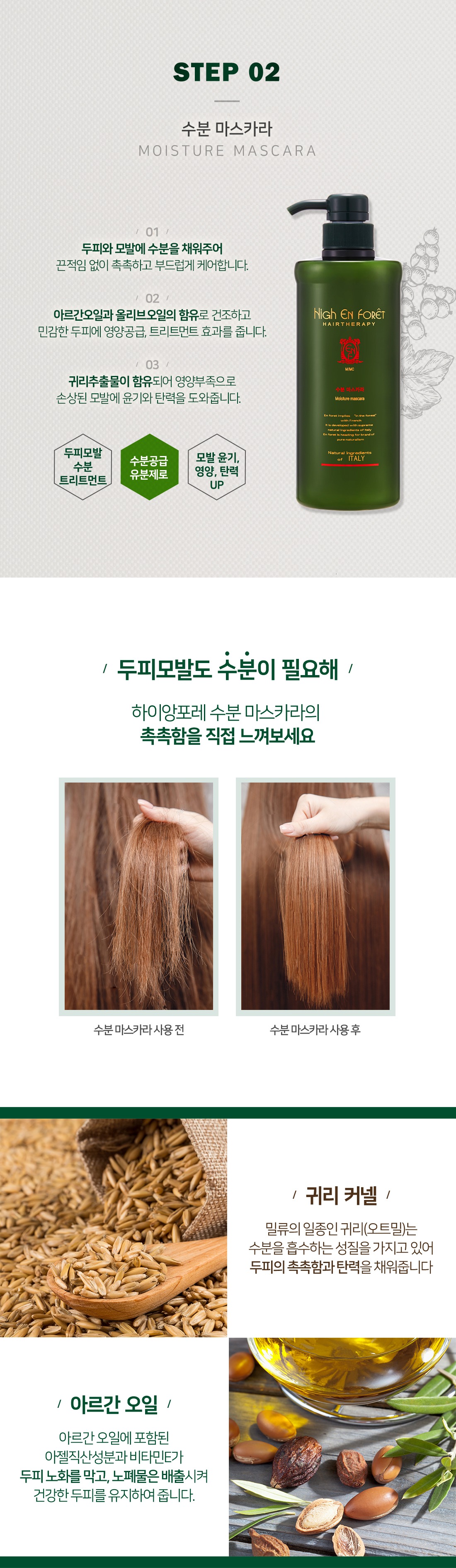 연맥(귀리)의 자연단백질과 올리브 오일 추출물이 함유되어있습니다.