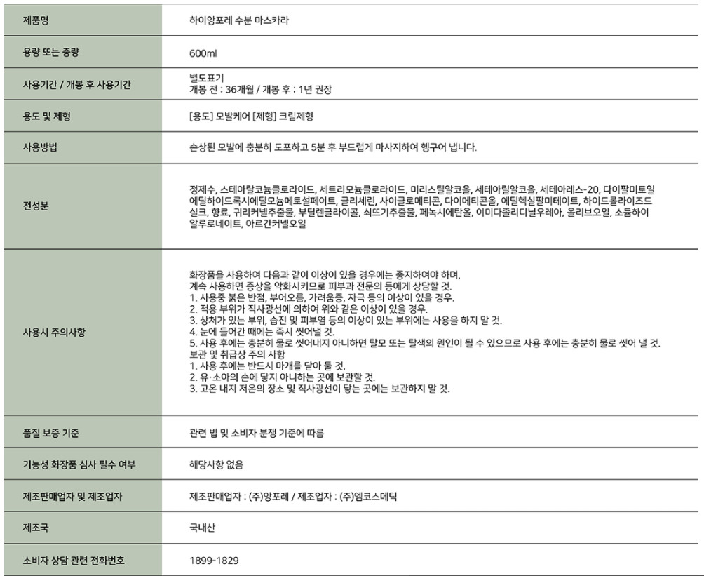 하이앙포레 수분마스카라 (600ml)